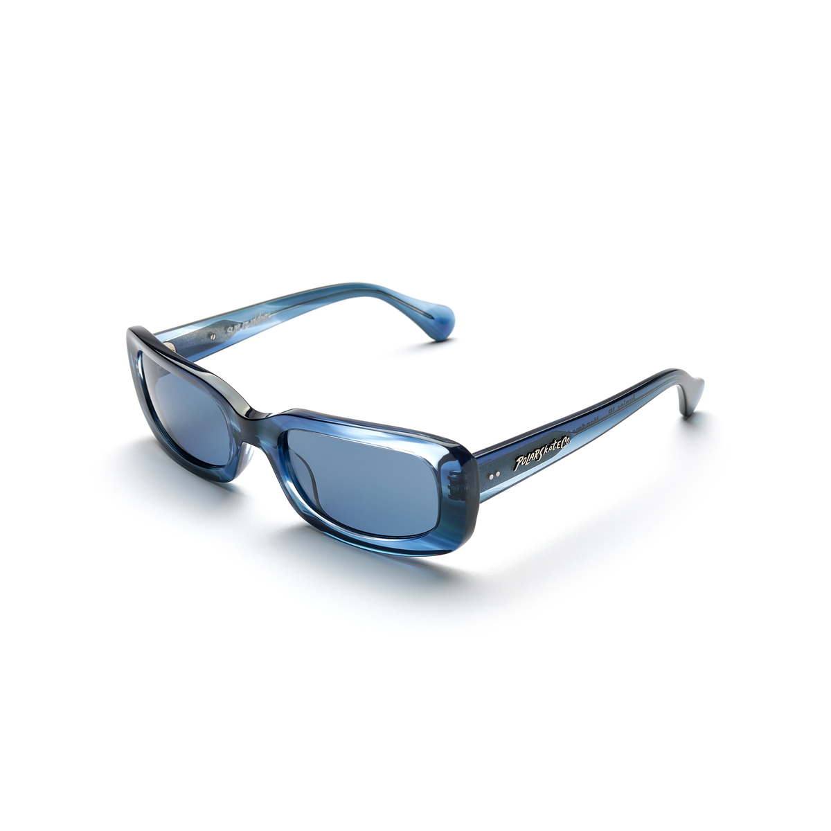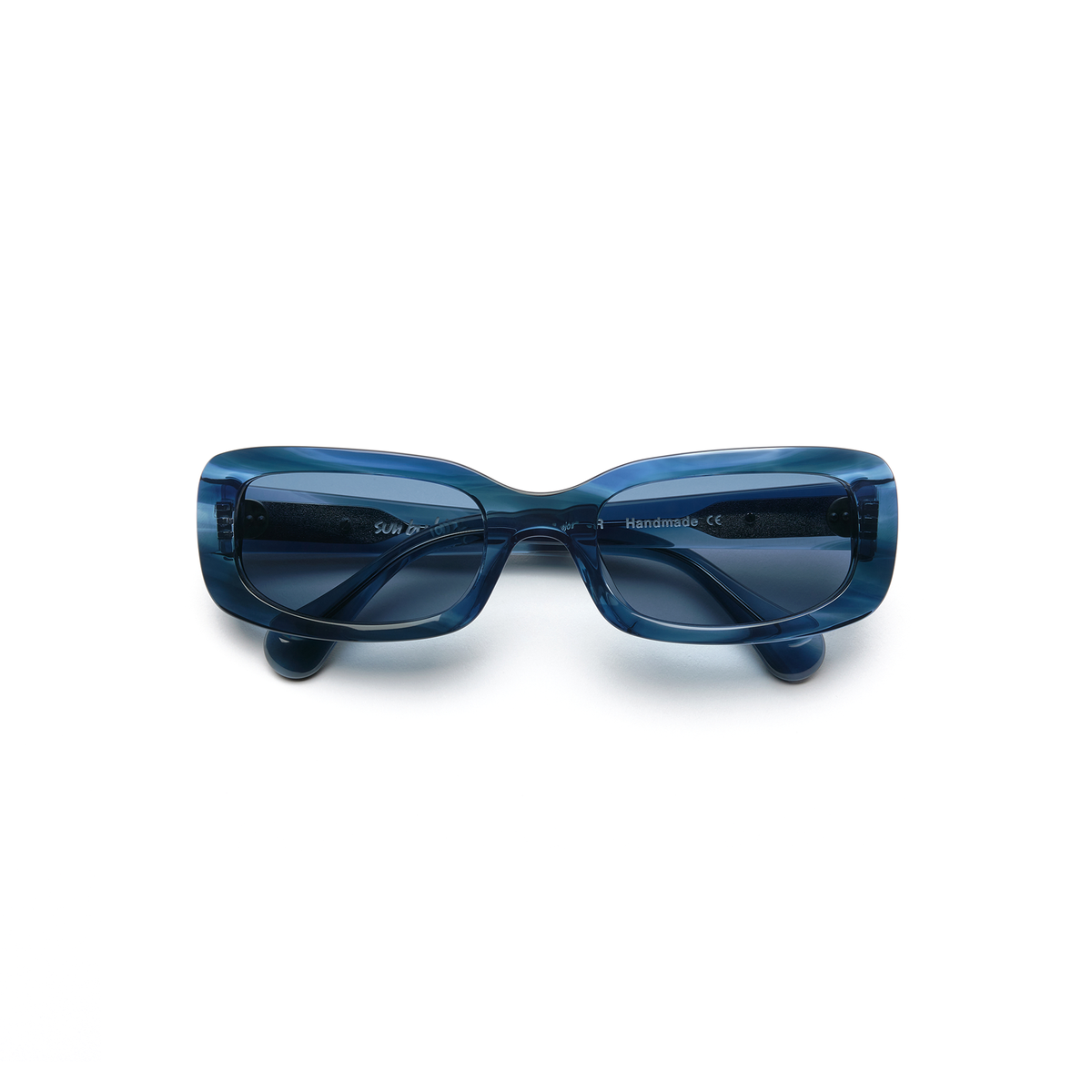 square shaped and slightly thinner frame in a blue colorway, handmade of