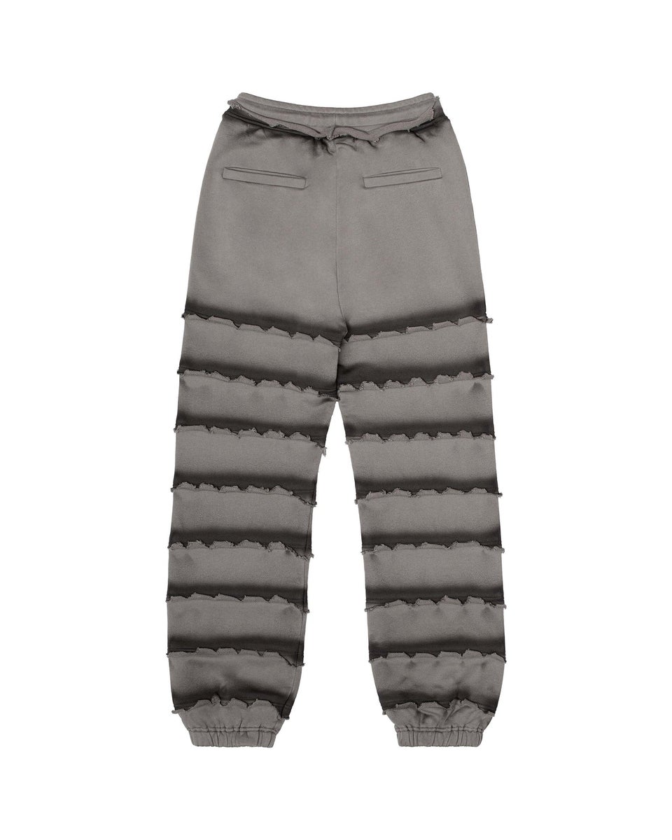 Loose-fit sweatpants in grey. Silkscreen graphic on the front. Two side zipper pockets and two pockets on the back. Signature metallic hardware. Contrast treatment and heave distressed finish seams. Elastic waistband with drawstrings. Will last you forever.