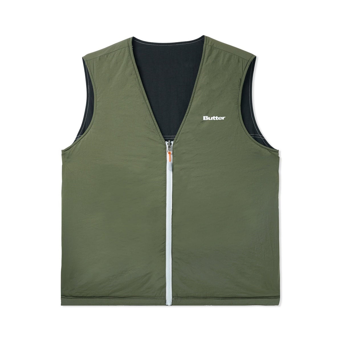 - Semi insulated nylon reversible vest - Contrast grid stitching - Woven label on outer - Rubberised print on internal breast - Pull cords with plastic grey toggles on zips
