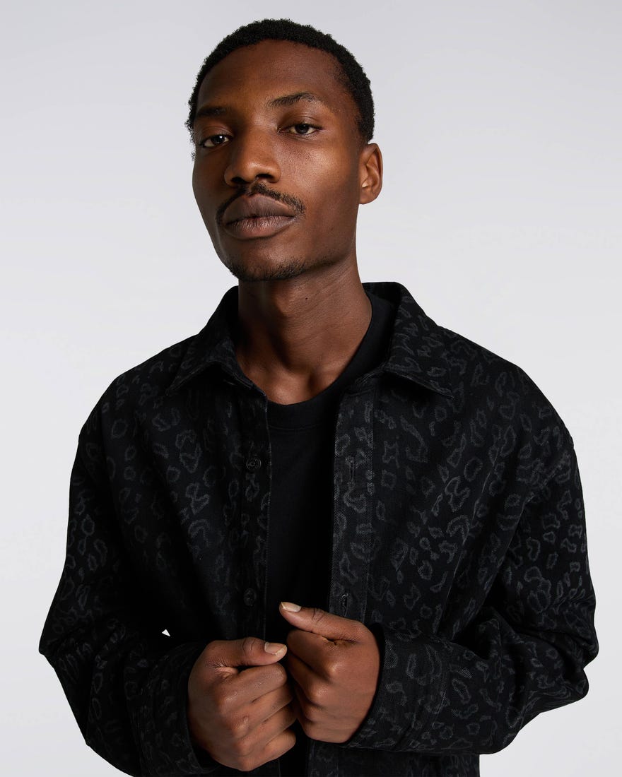 The EDWIN Rathan Shirt is an oversized fitting long sleeve Shirt with leopard laser all over print made from Pembroke Black Denim Fabric.