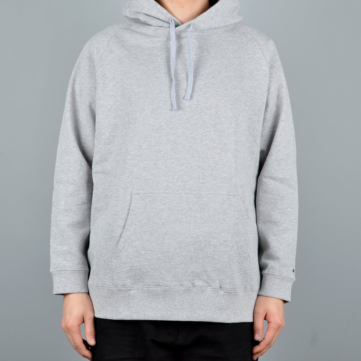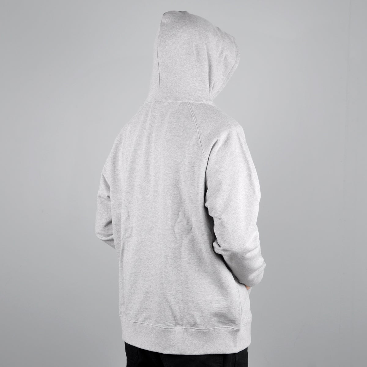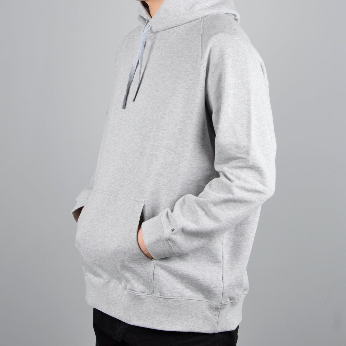 The Recycled Cotton Pullover Hoodie is designed to fit loose on the body, with the hem hitting below the waist.