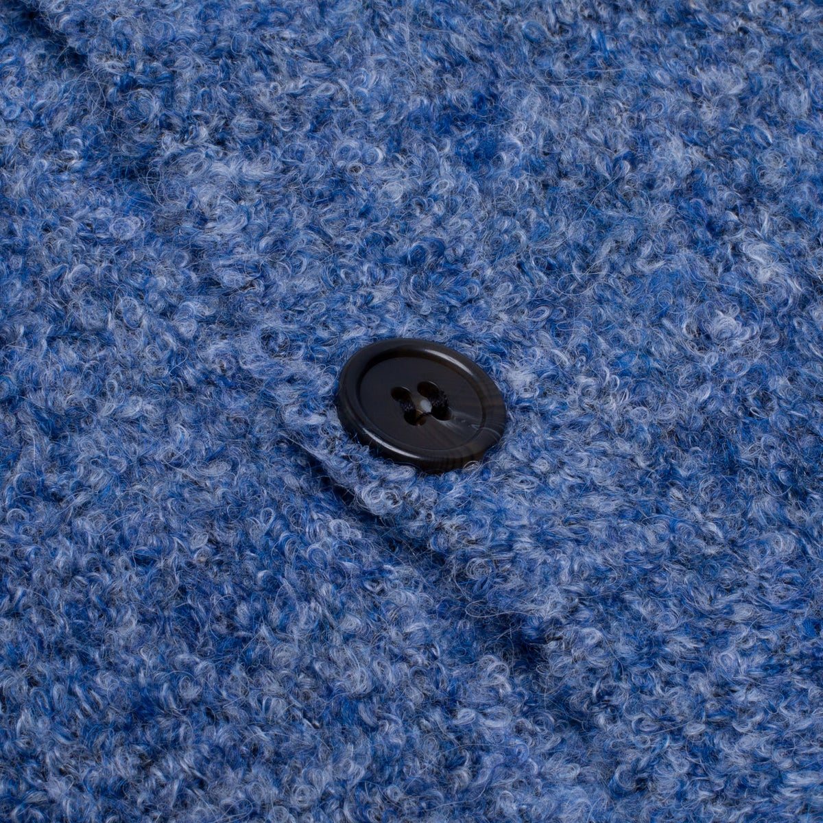 Relaxed Fit Drop Shoulder Cardigan. Fuzzy Lightweight Two Tone Boucle Yarn. Antique Brass "Florence" Metal Pin at Front Chest. Single Welt Front Ribbed Pockets. Tonal Plastic 4-Hole Buttons. True to Size Fit.