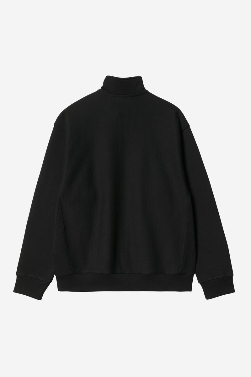 The Half Zip American Script Sweatshirt is constructed from a 12.3 oz cotton-polyester blend and brushed for extra softness and warmth, without losing breathability. The garment features a highneck with a zipper and a small logo. Appears in a loose, boxy silhouette.