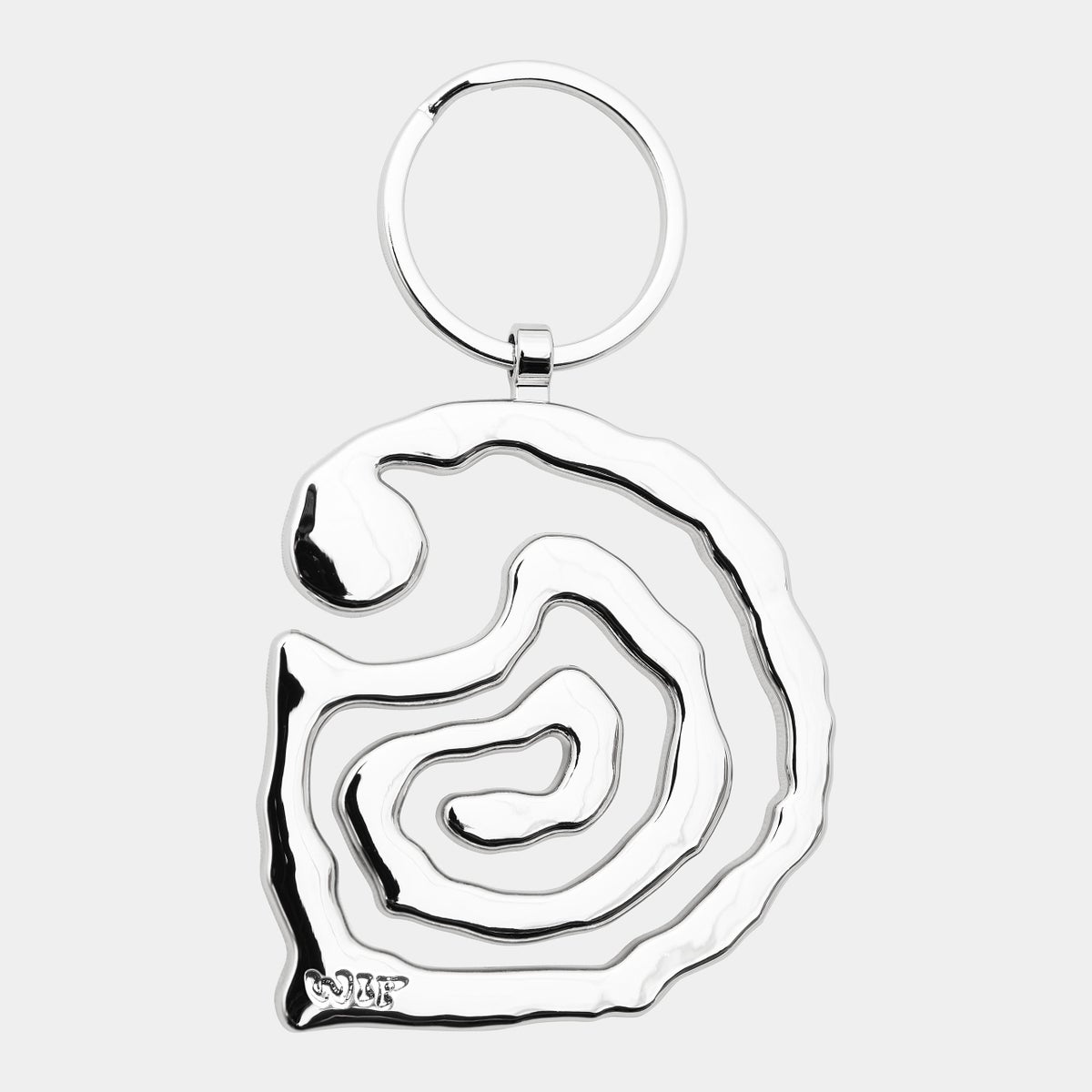 The Helix Keychain is made from zinc alloy with a shiny plated surface. Engraved branding appears at the back.