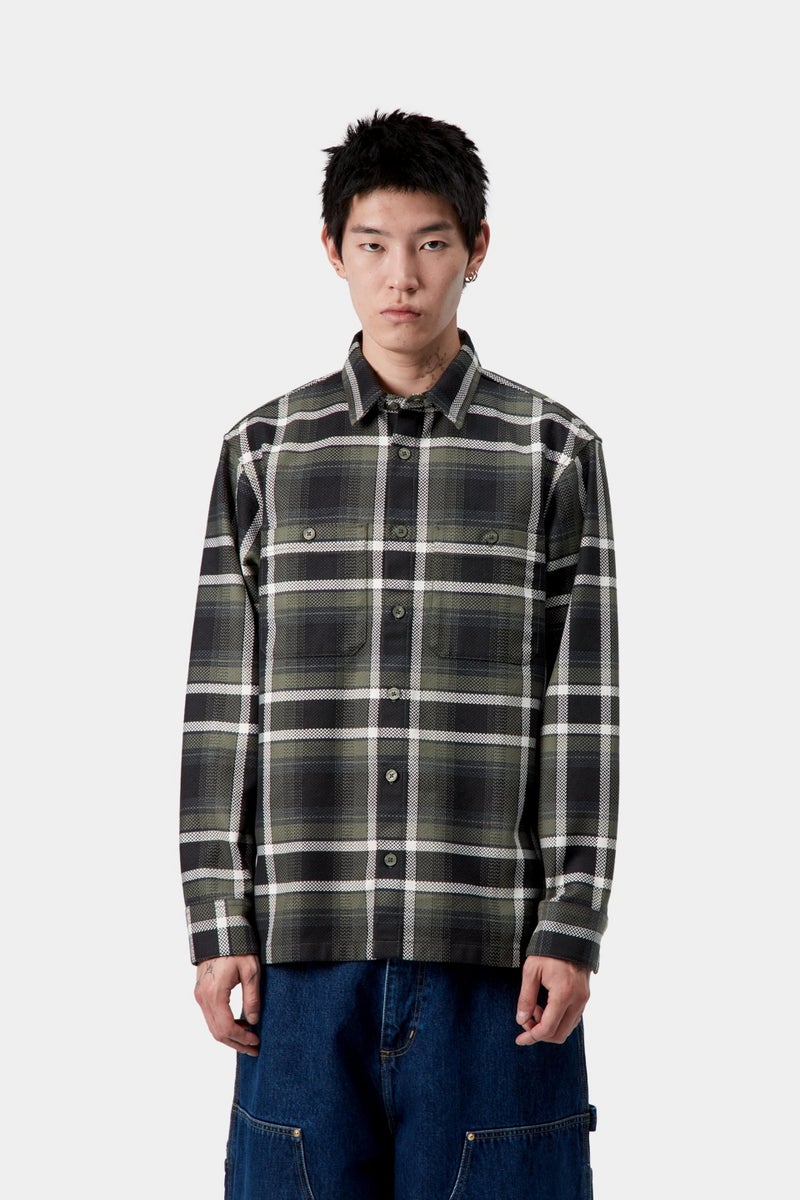 The L/S Vaughn Shirt is made in a loose fit from heavyweight herringbone cotton featuring an allover check pattern. It is also detailed with two buttoned chest pockets. A flag label appears on the side. A woven Square Label completes the design.