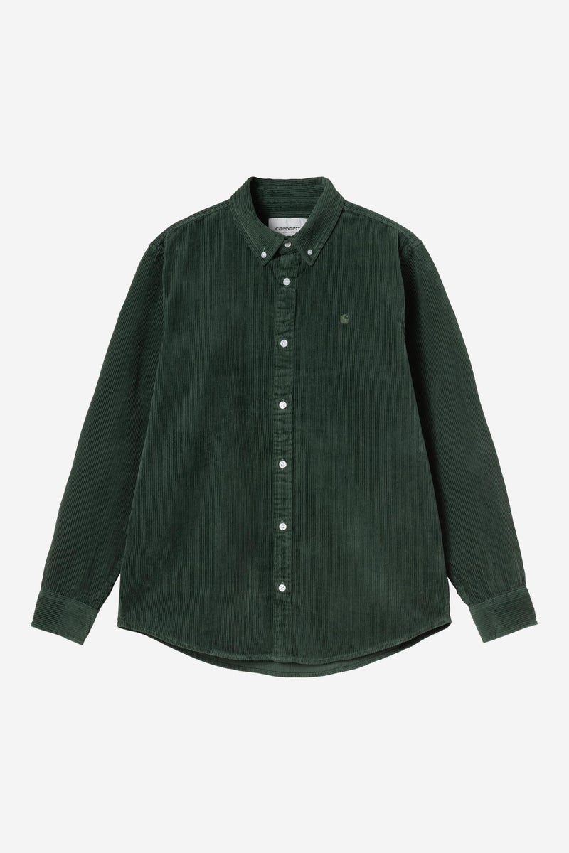The L/S Madison Cord Shirt is constructed from 8 wale cotton corduroy, meaning that the ridges in the fabric are of a wide thickness, and is cut to a regular fit. The style also features a curved hem, a button-down collar, and an embroidered 'C' Logo on the chest.