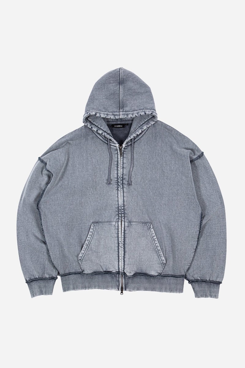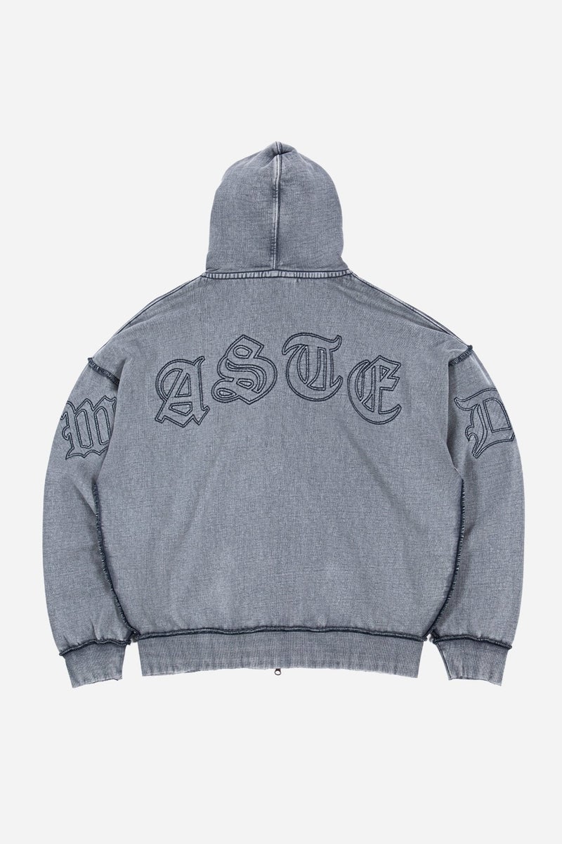 Kingdom Curve Faded Hoodie is made from a thick 420gsm fleece. It features a fade, a destroyed effect, and turned seams. It features Kingdom Curve embroidery on the back.