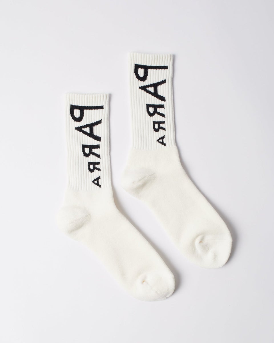 Reversed flag logo woven on both sides on our premium fabric blend socks. Woven in Tokyo on a vintage circular knitting machine.