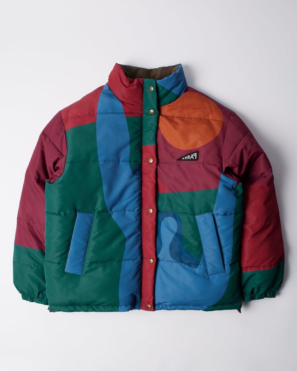 Reversible jacket with Protect the sun artwork on one side and a tonal brown on the other size.