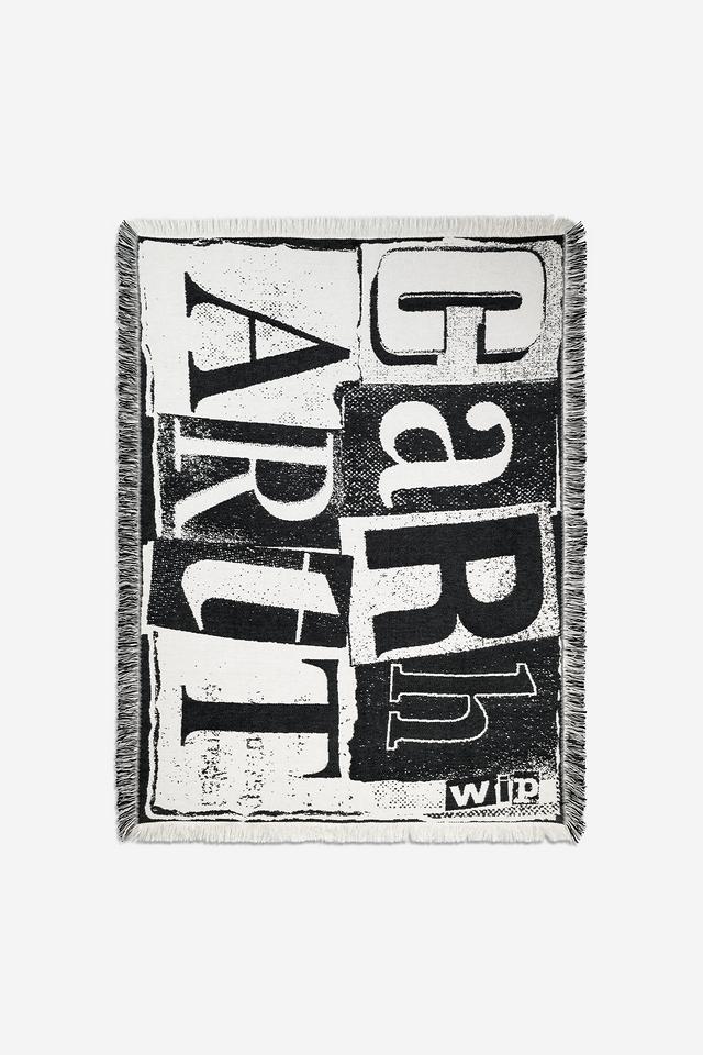 The Letterpress Blanket is made from heavyweight cotton featuring a woven jacquard graphic. The item is detailed with fringed sides.