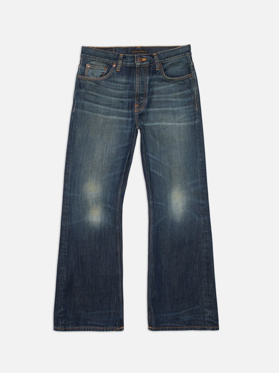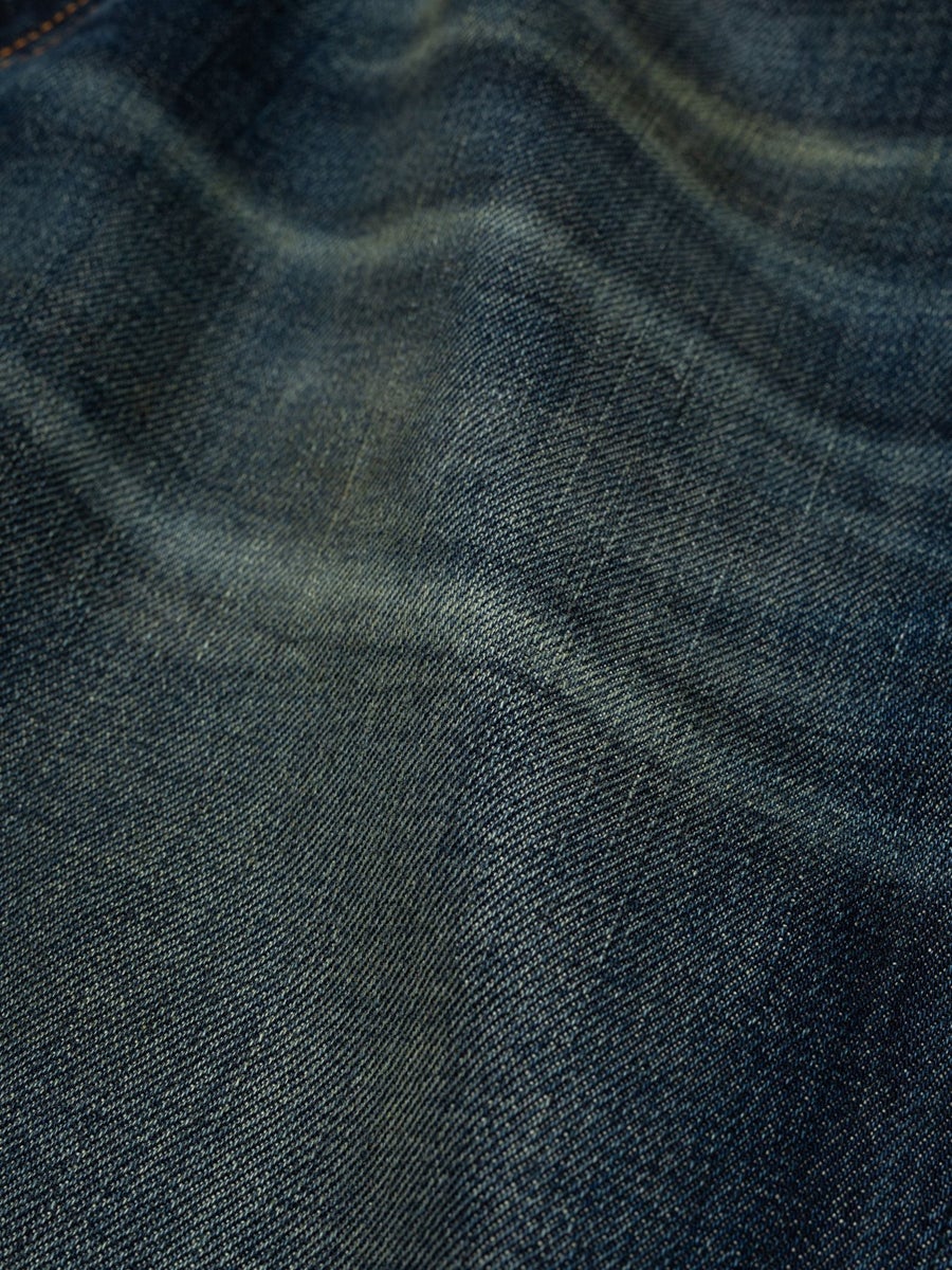Mid waist regular-fit jean with a flared leg crafted in the bold and unapologetic "Old News" wash. With a deeply saturated base, strong highlights, and a greenish tint that dirties it all down, this wash brings out the denim’s rich texture, showing off beautiful vertical slubbiness and subtle marble effects. Old News strikes a perfect balance between raw authenticity and deliberate exaggeration—blurring the line just enough. However you see it, one thing’s for sure—it’s beautifully gruesome in all the right ways.