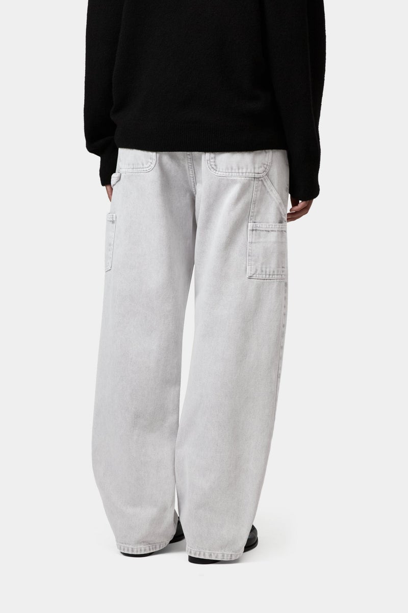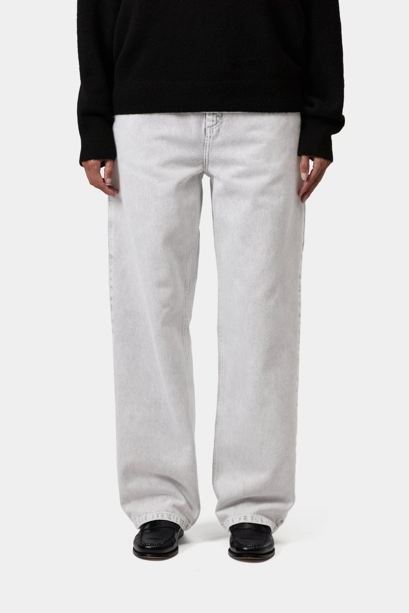The Women's Pierce Pant Straight is made from heavyweight cotton denim with a 'chalk wash', which offers a sun-faded effect with a strong variation in color on details. The item has a relaxed straight fit with a regular waist. Tool pockets and a hammer loop nod to the style's utilitarian influences. A woven Square Label appears on the rear pocket.