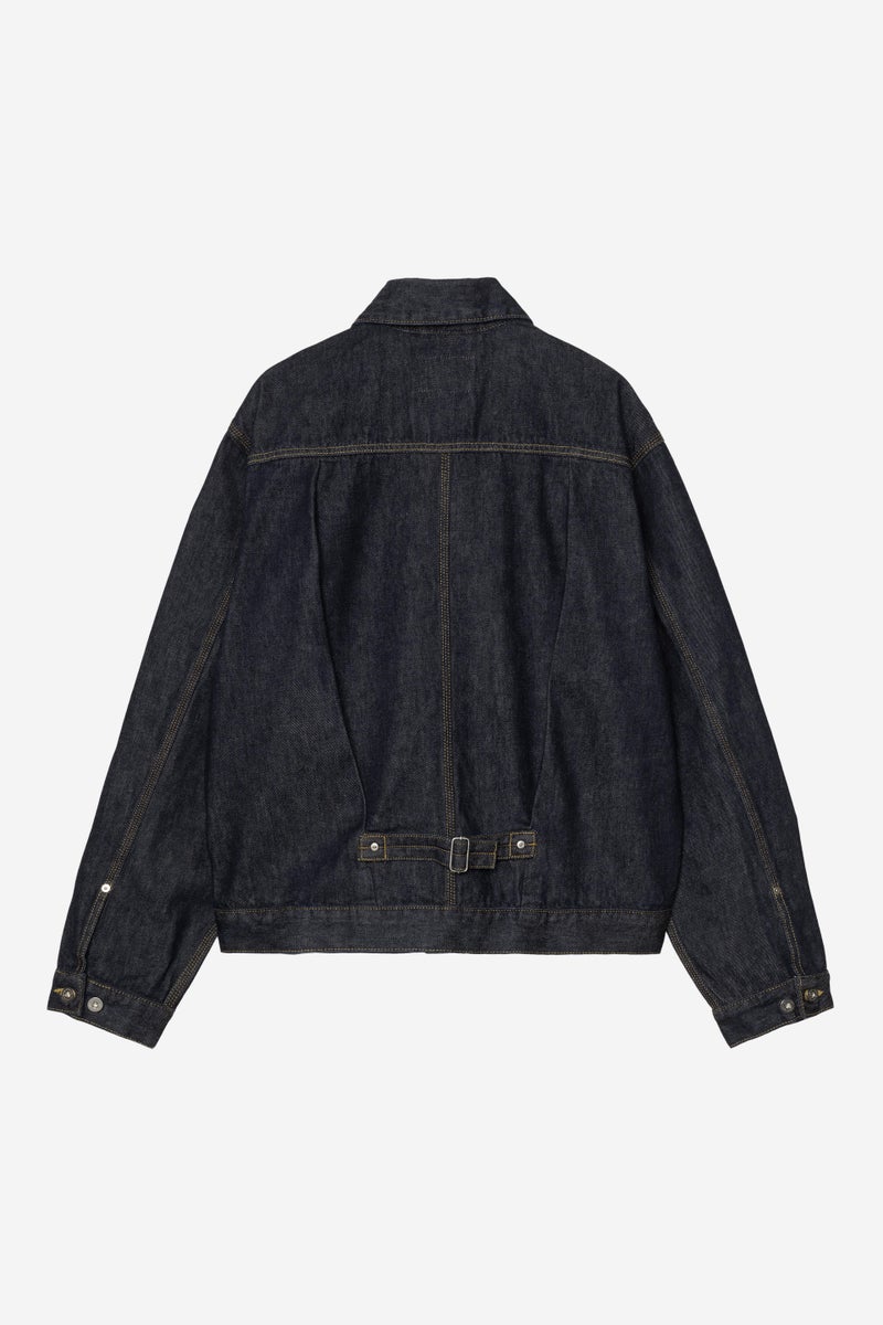 The Belmar Jacket is made from a heavyweight, unlined cotton denim. The item features two chest pockets and two side pockets, and is detailed with bartack stitching and metal rivets at vital stress points. A buttoned back strap and cuffs offer an adaptable fit. A woven Square Label completes the design.